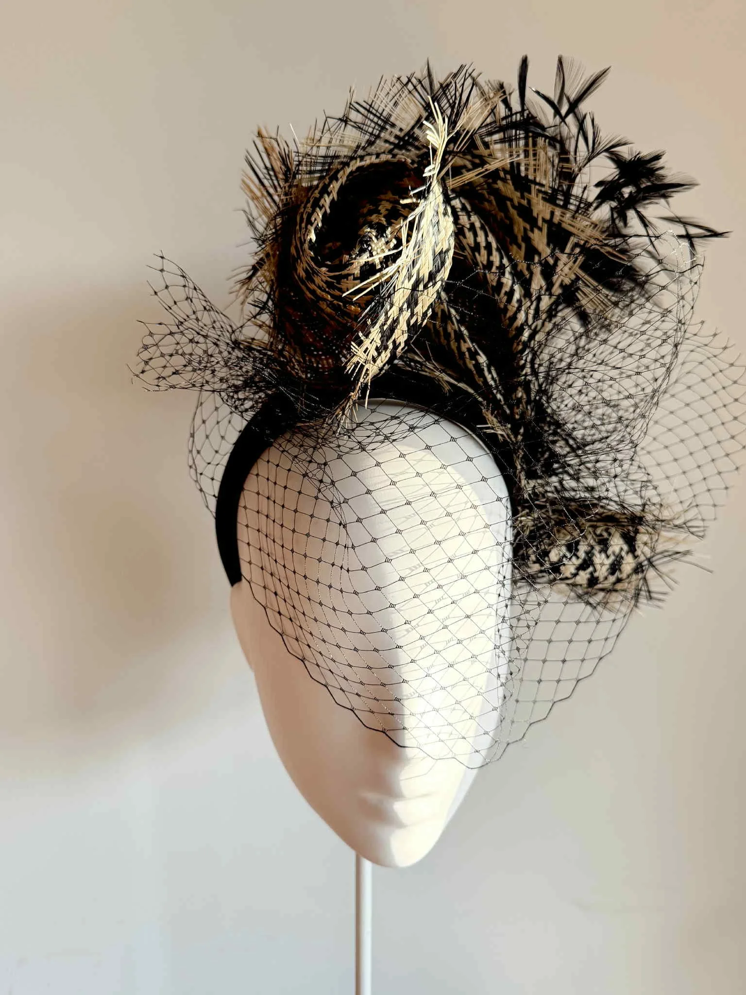 Shop › Golden layers Image 1 of 3 Image 2 of 3 Image 3 of 3 Golden layers $425.00 Black & gold sculpted crinoline piece, decorated with vintage black & gold veiling, set on a metallic gold headband. Purchase Added! Black & gold sculpted crinoline piece, decorated with vintage black & gold veiling, set on a metallic gold headband. Reviews Reviewer Name Review Date Star Rating Description Posted on Etsy Product Show More You Might Also Like Quick View Oversized straw bow Sale Price: $250.00 Original Price: $475.00 Sale Quick View Silver lining $400.00 Quick View Monochrome Mowhawk $400.00 Quick View Fire finch $400.00 Quick View Monochromania $425.00